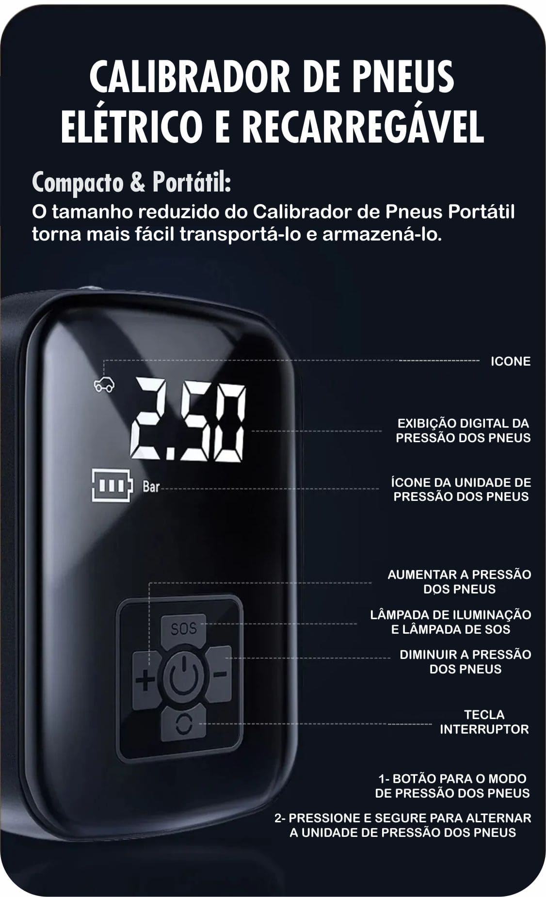 Sem cabos ou fios para te prender, o Calibrador De Pneus Portátil Compreex oferece liberdade total de uso em qualquer lugar.