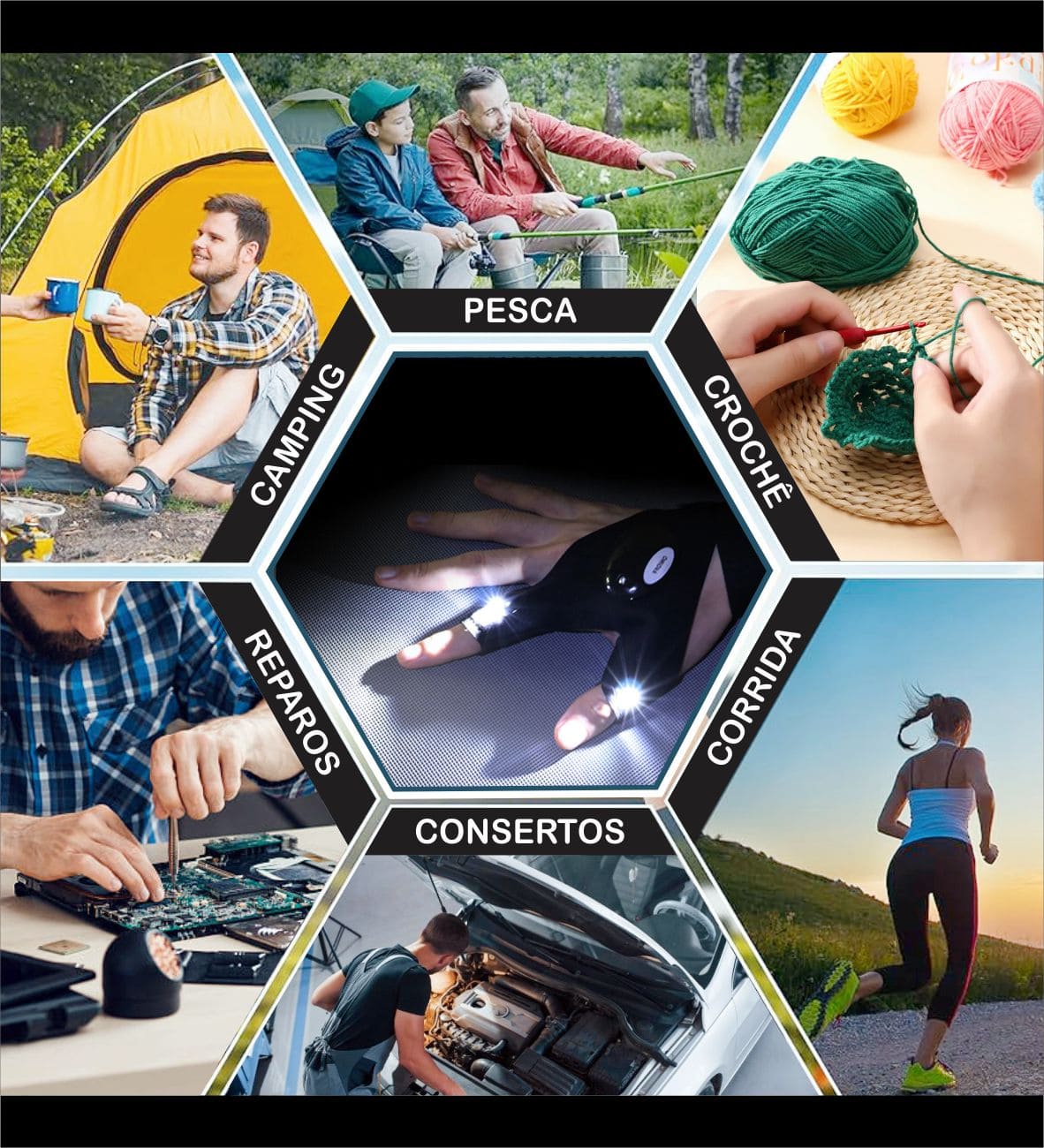 As Incríveis Luvas de Led Compreex foram totalmente desenvolvidas para lhe auxiliar durante a realização de reparos, pesca noturna, caça, acampamento, montanhismo, caminhada, passeios com o seu cão e muito mais!!!