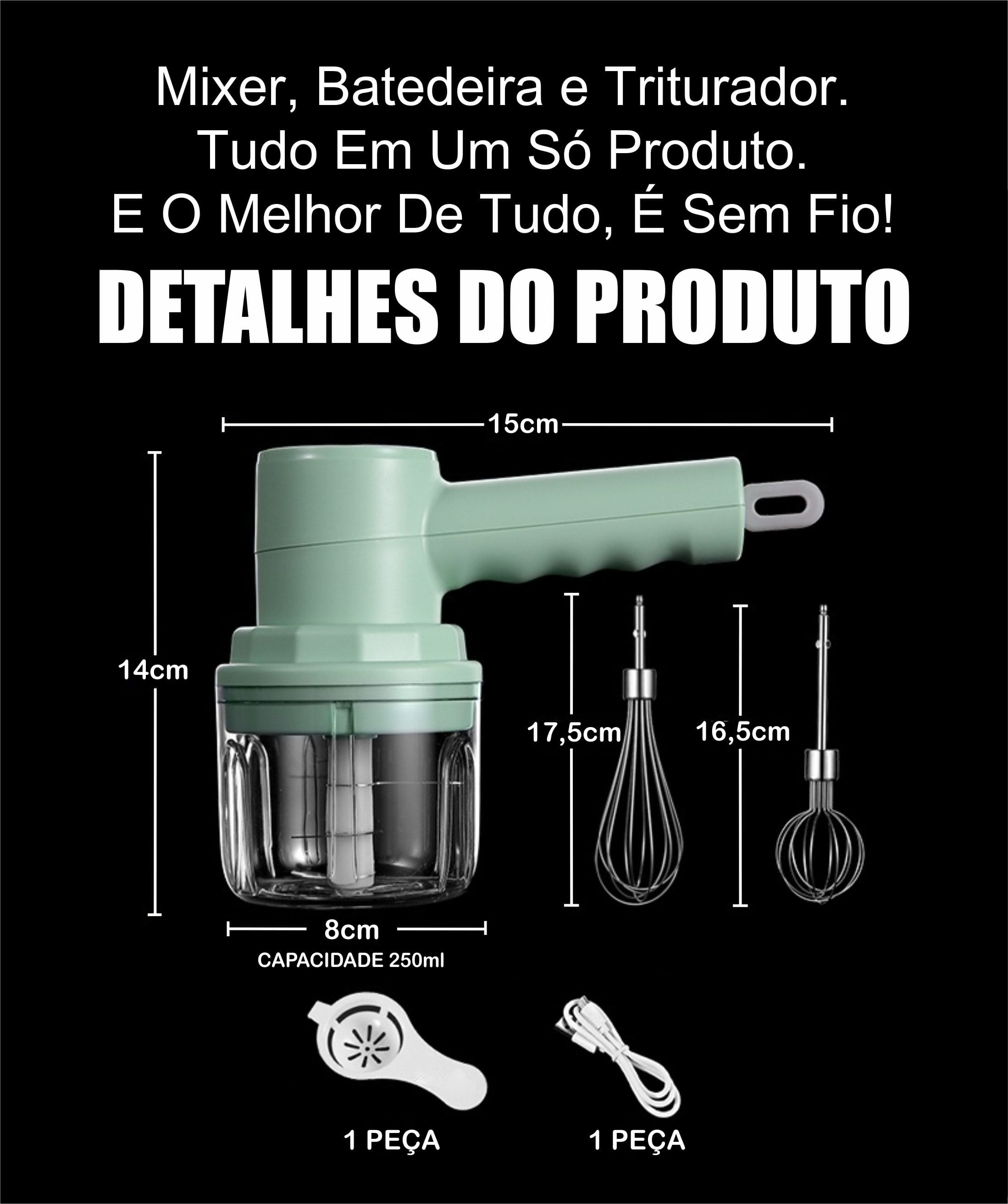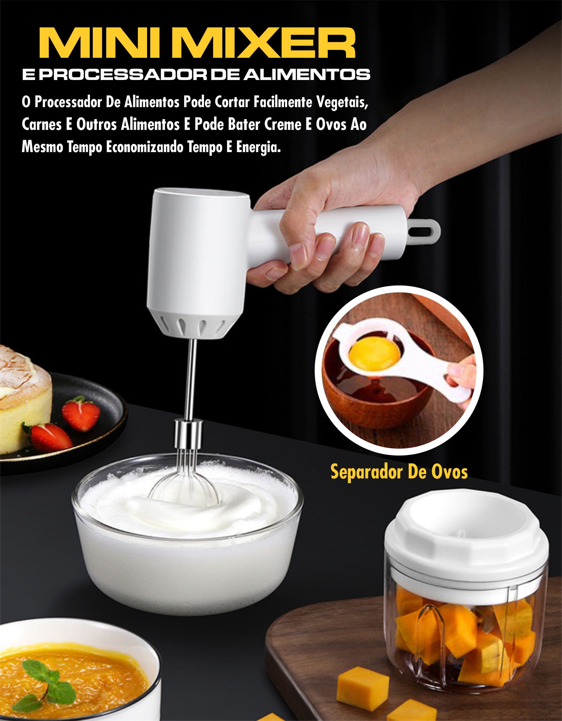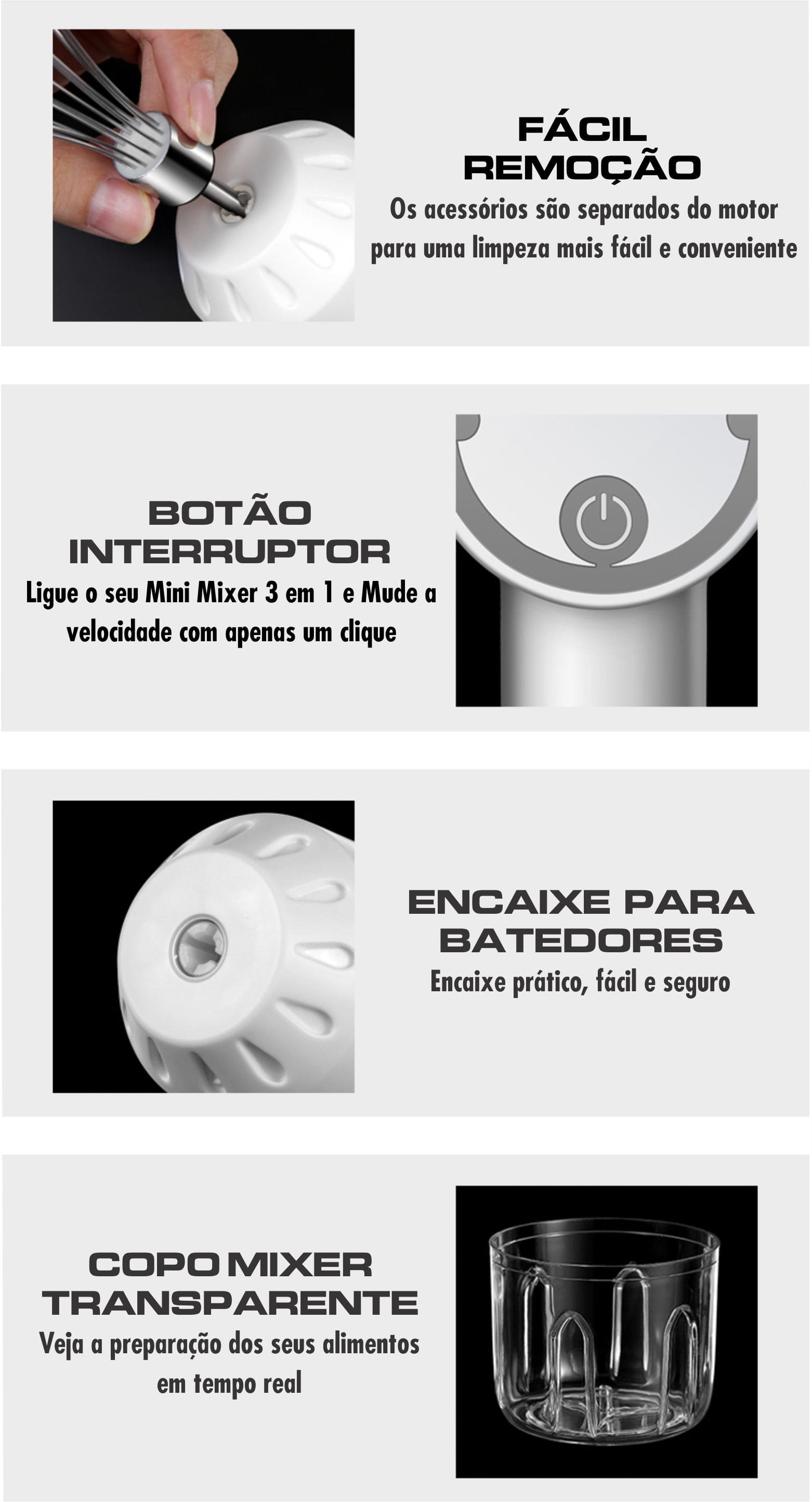 Com o Mini Mixer 3 Em 1 você economiza tempo e espaço na cozinha.