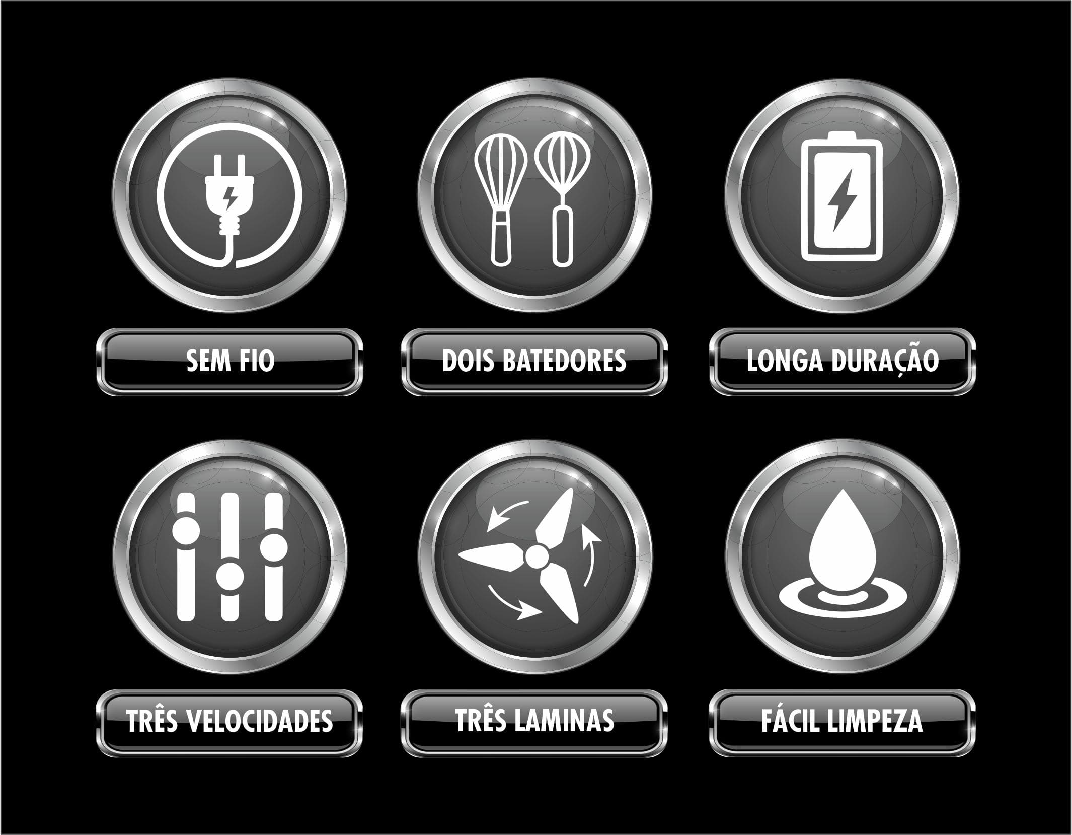 reforçadas permitindo misturar massas leves, bater ovos e triturar alho e carne, salsinha, cebola, etc.