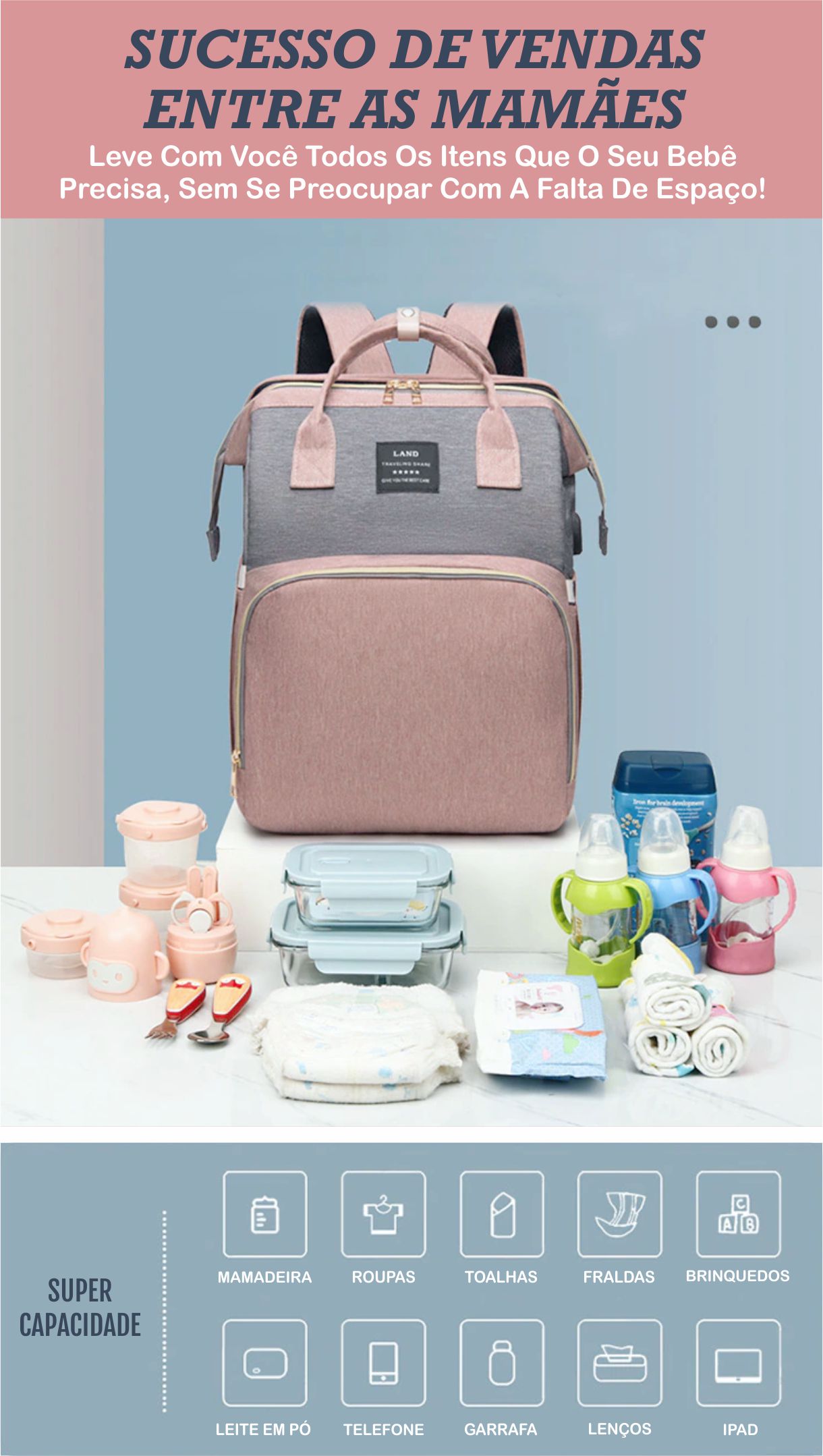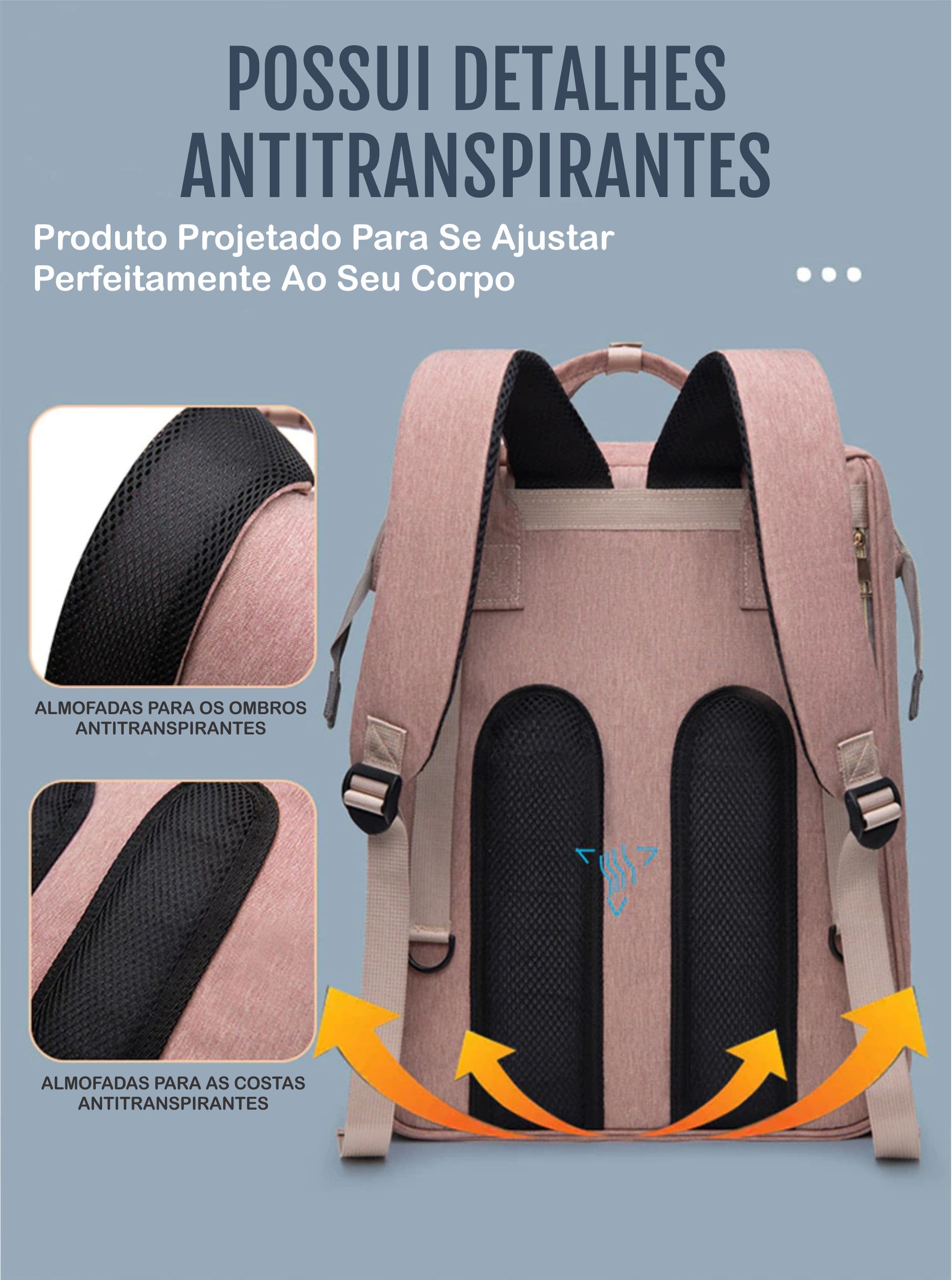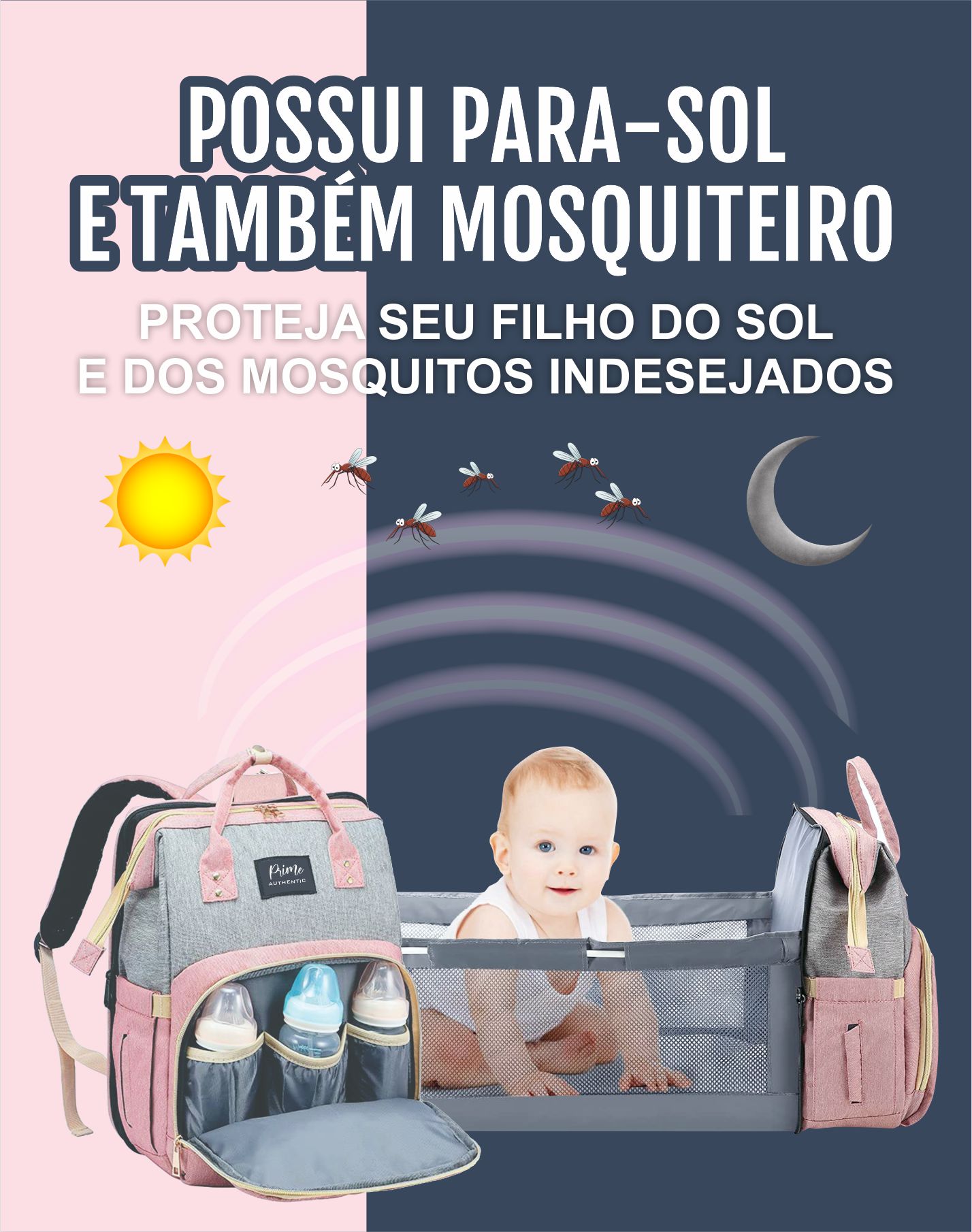 Nossa Mochila foi desenvolvida para facilitar a vida das mamães na hora de viajar ou passear com seus pequenos.