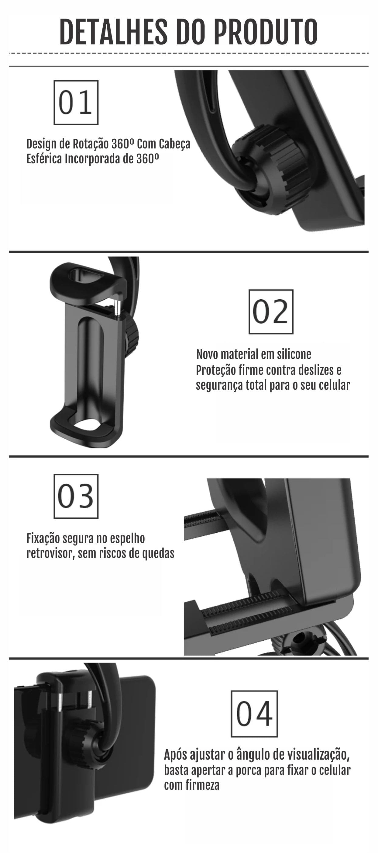 Ajuste seu celular em qualquer ângulo com a rotação de 360 graus. Perfeito para visualização horizontal ou vertical.
